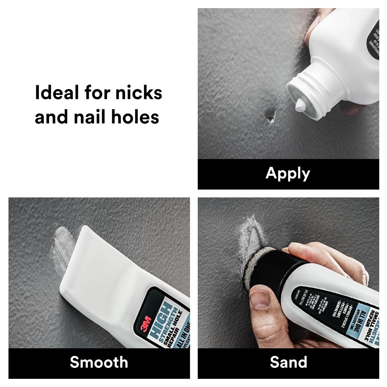 - QUICK AND EASY repair for nicks and nail holes